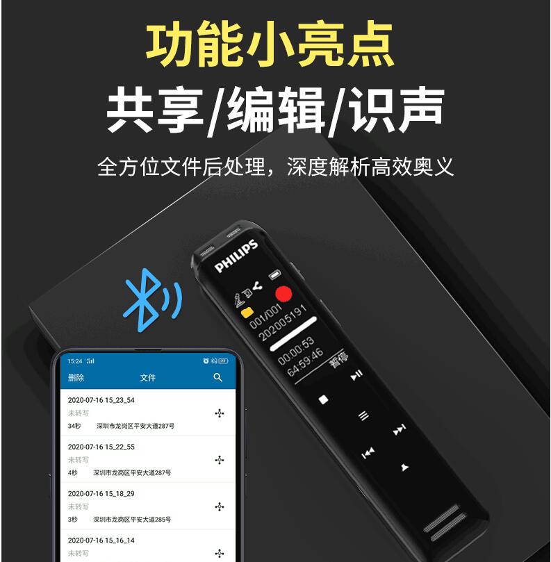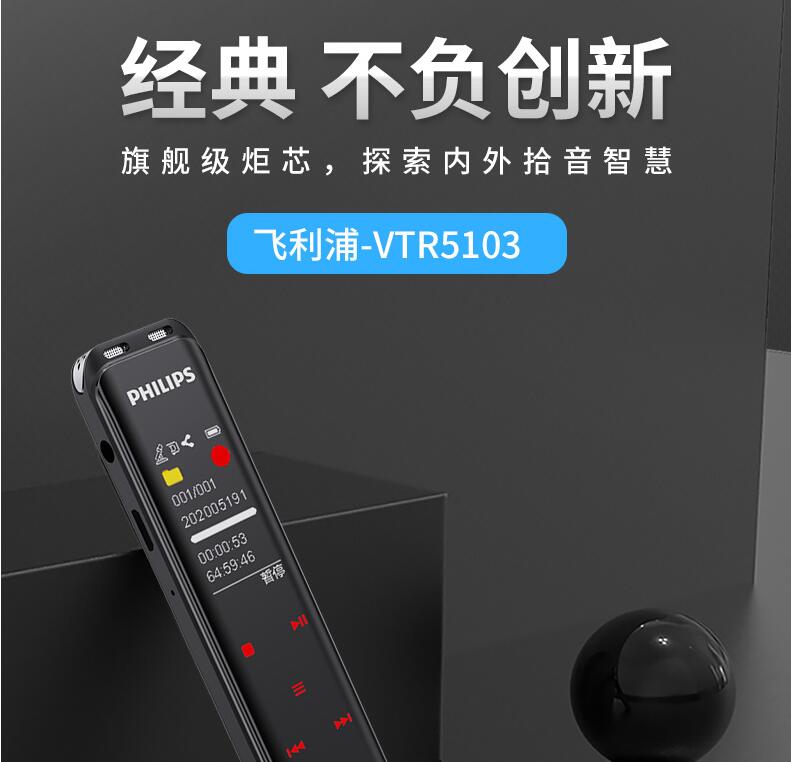 飛利浦VTR5103 Ai智能錄音筆轉(zhuǎn)文字翻譯專(zhuān)業(yè)高清降噪小型超長(zhǎng)待機(jī)